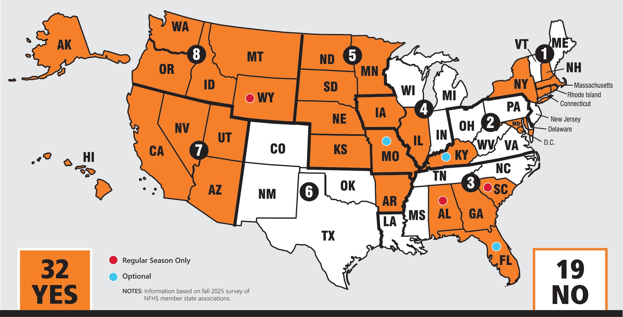 As the fourth year of the shot clock begins in 2025-26, 32 states now use the shot clock in some form or fashion. While most of the 32 states utilize it altogether, some states use it only during regular-season games while others have made its use optional for member schools.
